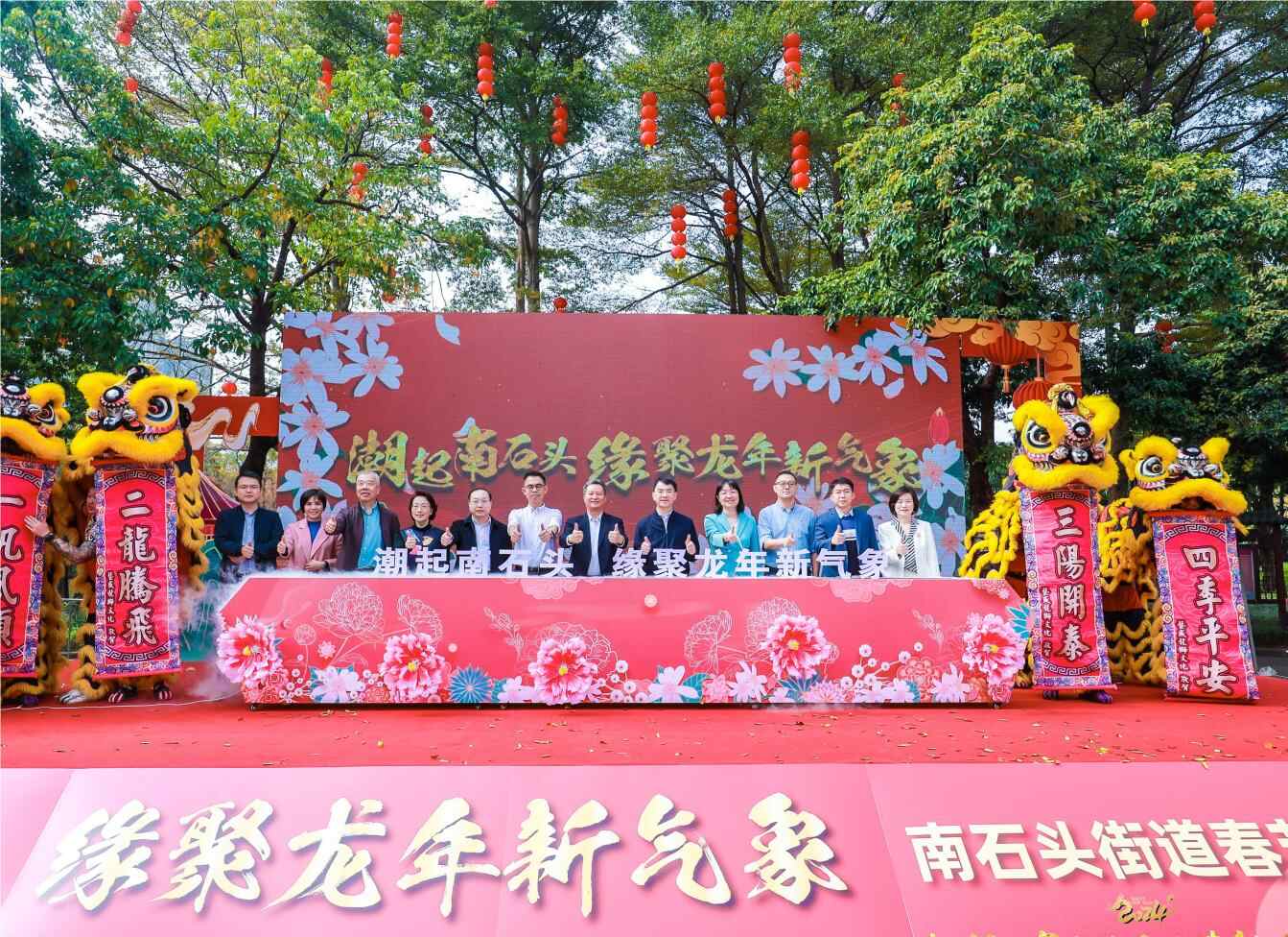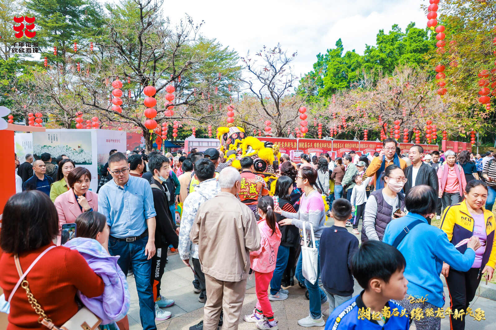 现场设置了“南石头民俗文化展”“南石头工业文化展”两大展览,吸引了不少群众游客驻足观看。同时,结合广府花市文化,通过复古、现代、传统等多种风格设置6个潮玩打卡点,开展乐器表演、舞狮表演、书法大家挥春送福、老字号产品展销、消防安全、垃圾分类、关爱来穗人员政策宣传等多个互动摊位,传递龙年美好祝愿,彰显南石头魅力和活力。