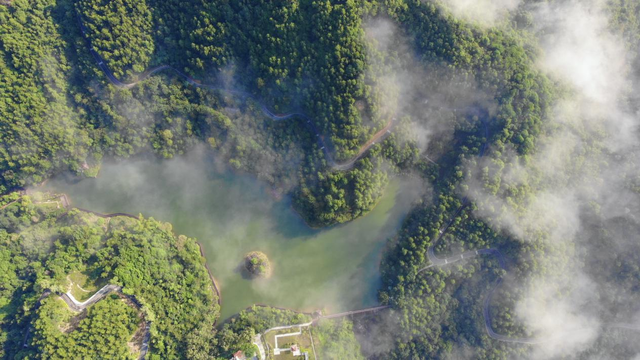 从空中航拍,整座白江湖的山势就像一条“盘龙”。在当地老百姓中也流传着这样一个故事:千百年前,一条青龙因犯了天条,被贬下凡间。它在这片土地上蛰伏,历经风雨沧桑,化作了如今的白江湖。