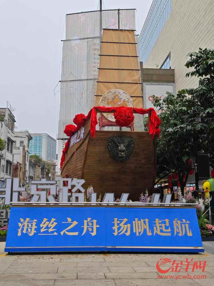 2月6日上午,广州市越秀区西湖花市开市后,代表广州海上丝绸之路文化的标志性景观作品“海丝之舟”在北京路举行“启航”仪式。