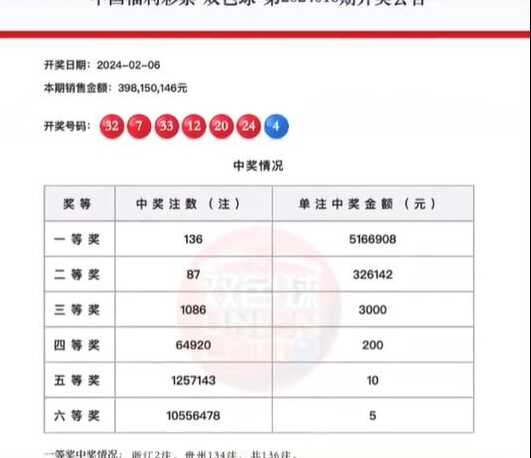 2月6日晚,福彩双色球第2024016期开奖,同时也是兔年最后一期双色球开奖。