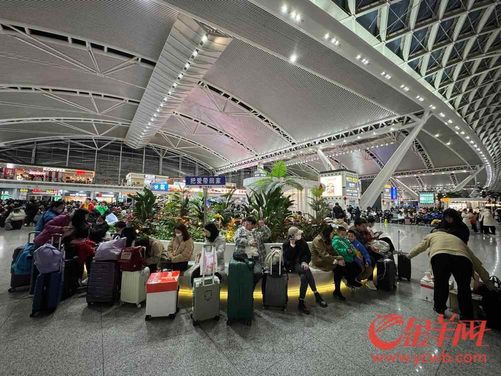 春运节前发送客流最高峰出现在2月3日(南方小年夜腊月二十四),发送旅客221.2万人次,同比增长38.4%,创今年节前发送旅客单日最高峰值。节前客流主要流向湖南、广西、湖北、江西、福建、河南、贵州、四川、重庆等省区市。广东地区热门出发地为广州、深圳、东莞,客流抵达集中在湖南、广西、贵州、四川、重庆等地区。