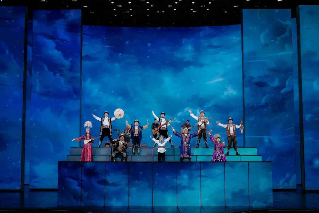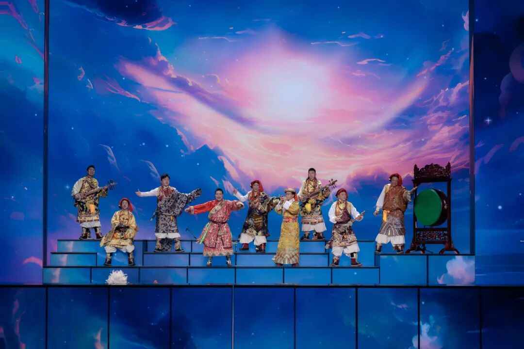 《永恒的诗篇》三组表演者分别来自克孜勒苏柯尔克孜自治州歌舞团、安达组合和西藏昌都市康巴文化艺术团,舞台上还有三位汉族乐手与他们全程共演。在一次又一次排练中,导演组与表演者们不断琢磨歌曲表演和舞台呈现,彼此的节奏也日益合拍。在除夕之夜的演出中,大家的歌声与演奏真正如歌词所写,像石榴籽一样紧紧地拥抱在了一起。