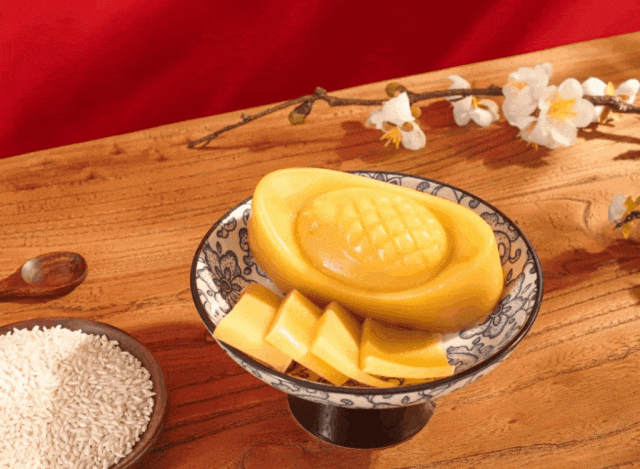 菠萝年糕原料采用徐闻个头饱满、果香浓郁的鲜香菠萝,保留精华果肉,选用优质糯米粉,做成菠萝元宝造型,寓意新年吃“糕”,步步“糕”升。