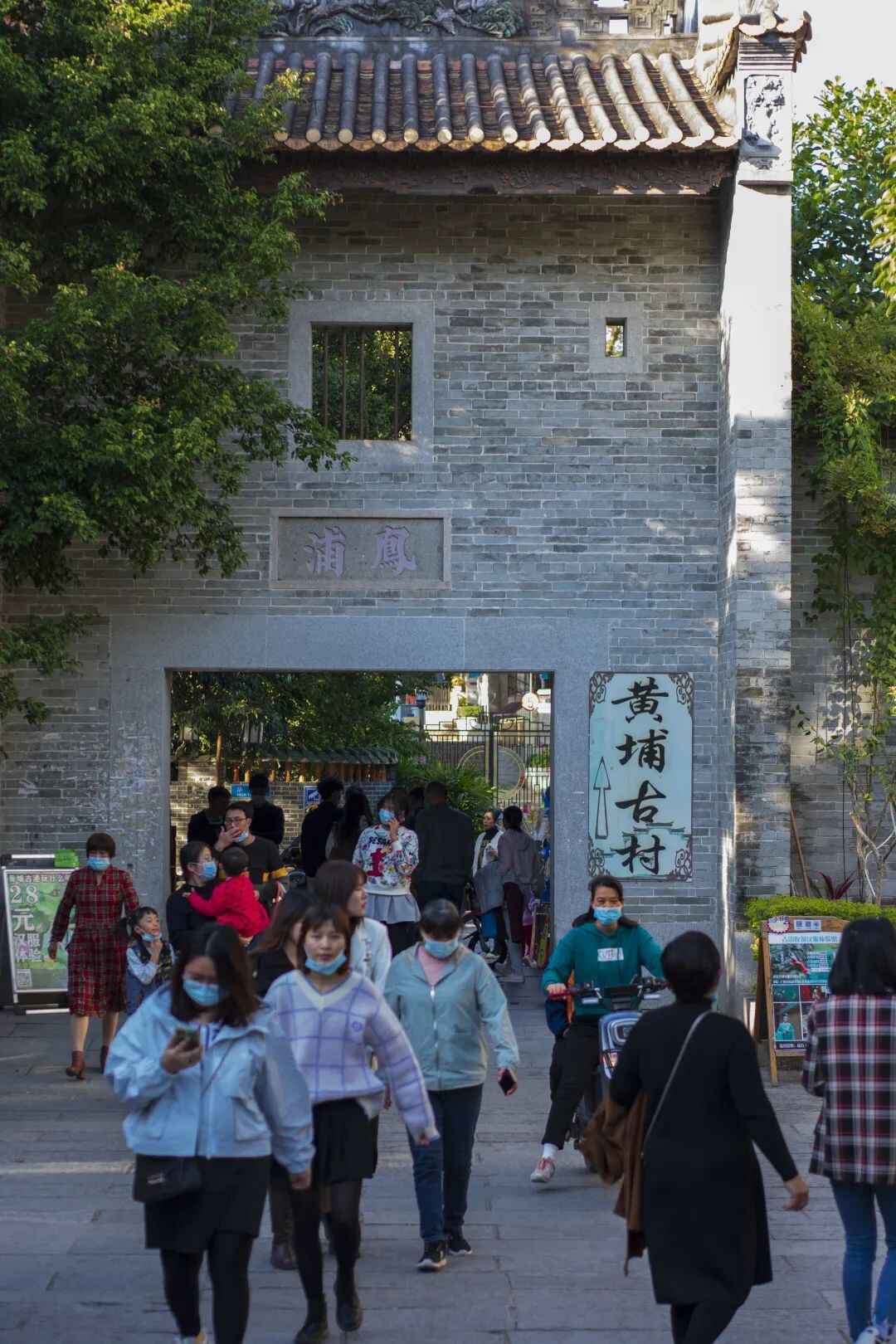 黄埔古港位于黄埔古村,以凤浦牌坊为界,两块区域分隔开来,如今,它们统称为「黄埔古港古村历史文化景区」。