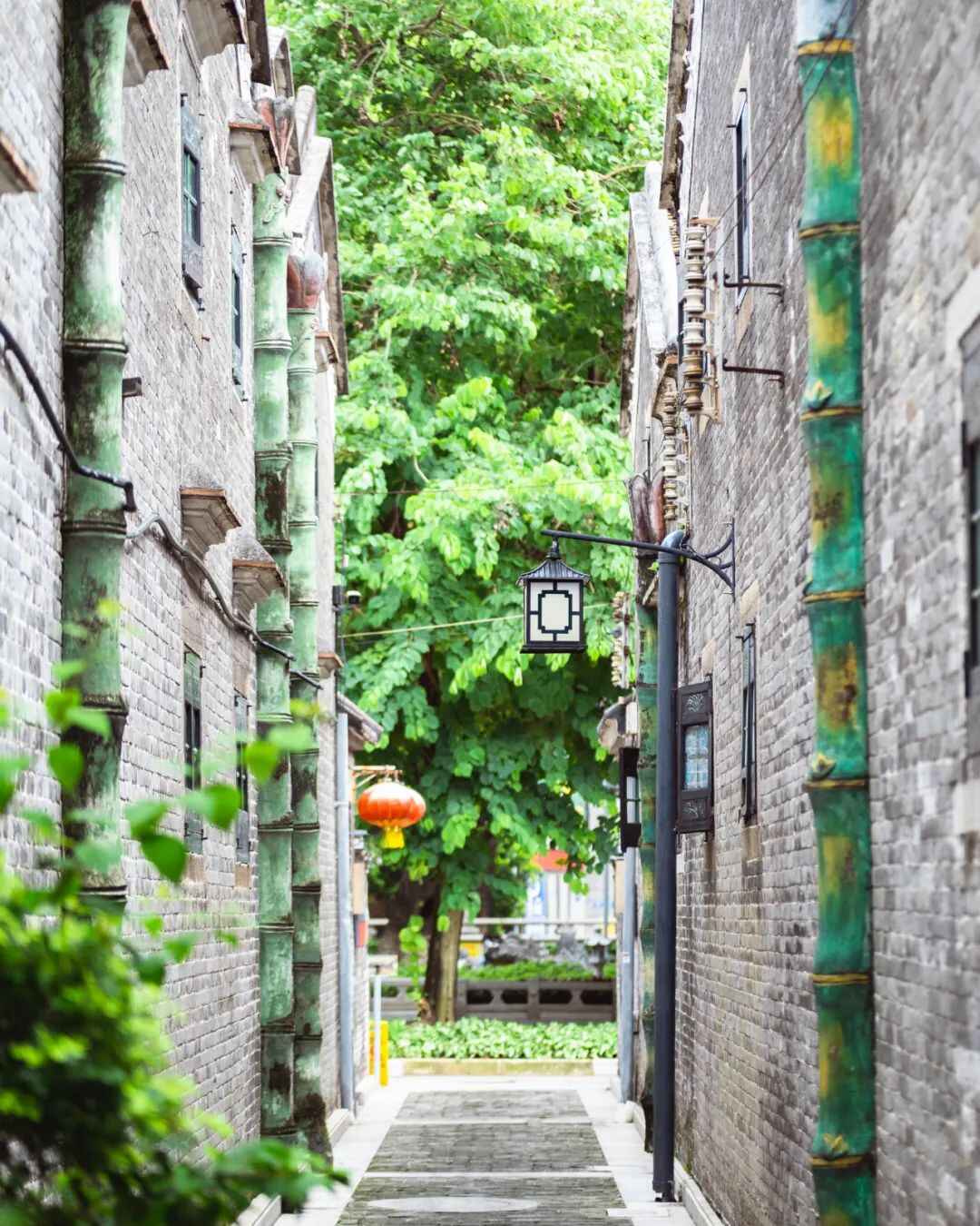 聚龙古村建筑风格独特,融合开平碉楼和西关大屋特色。19幢清代双层青砖别墅按井字型铺成7条街巷,趟龙门、木雕、屏风、青石板路……山水楼台之美竟能在城市中心近赏,置身于鳞次栉比的清代建筑群落,有种时光倒流的交错感。