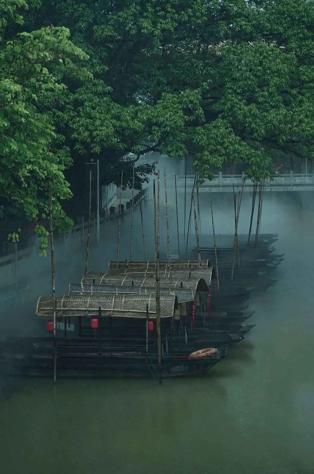 这里用喷雾技术特别打造了「烟雨水乡」效果,让人仿佛置身烟雨江南,天青色等烟雨的意境之中。推荐穿古风衣服来拍照,雨天来更加有意境。