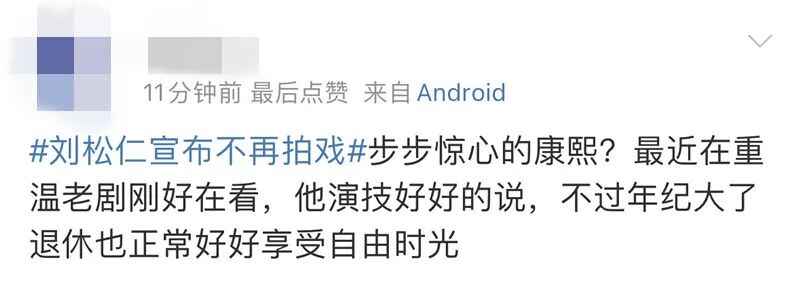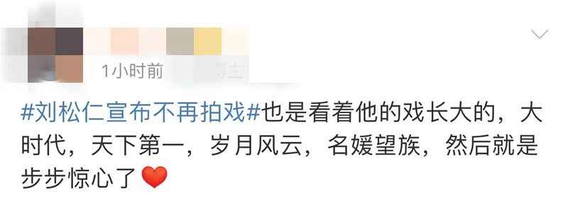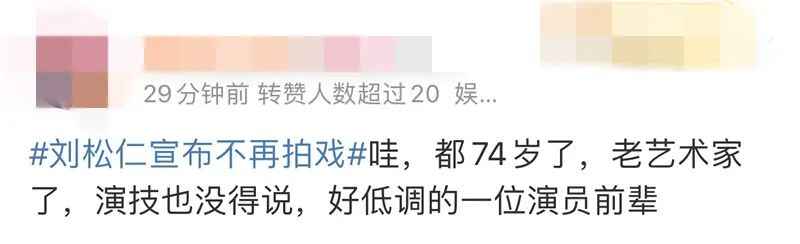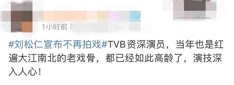 2月16日下午,香港知名老戏骨刘松仁在个人微博上承认,自己将“不再拍戏”。
