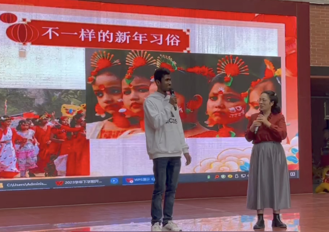 来自孟加拉国的留学生张浩目前就读于广东外语外贸大学,他来到广州市何香凝纪念学校与师生们一起分享他和中国年的故事。现场,张浩一开口便引起全场欢呼,“说得太好了。”他对记者表示自己特别喜欢在广州过新年,很喜欢广州的气候和饮食。黄宏杰表示,开学当天正值正月初十一,因此学校开学典礼年味十足,而此次开学典礼邀请了外国友人与孩子们一起互动,是希望孩子们除了了解中国传统外还能在世界舞台上讲好中国故事。