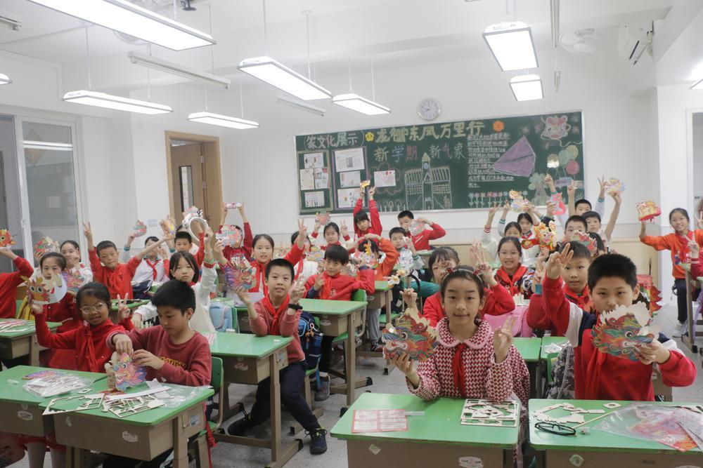 东风东路小学,孩子们制作“福禄寿禧龙”