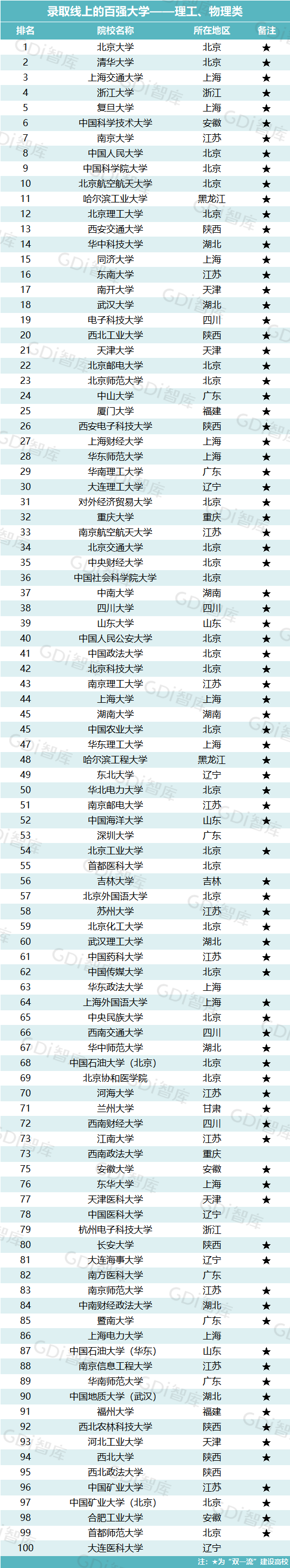 2月22日,广州日报数据和数字化研究院(GDI智库)发布“录取线上的百强大学榜”(以下简称“百强榜”),推出两大榜单:“录取线上的百强大学—文史、历史类”和“录取线上的百强大学—理工、物理类”。