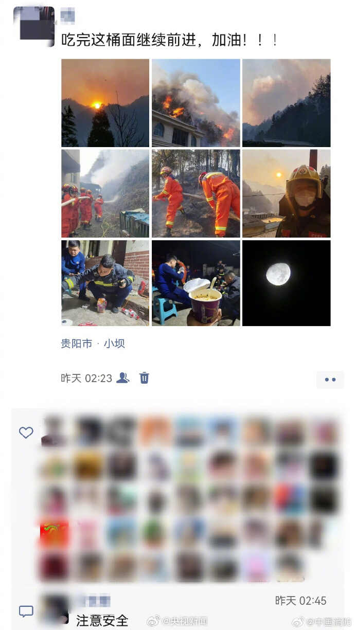 在贵州山火救援一线消防员朋友圈里,有消防员选择将朋友圈设为“家人不可见”,避免家人看到担心。