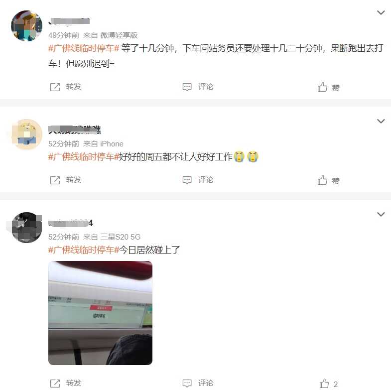 当日上午,不少网友也反应确有其事,遭遇了广佛线临时停车。