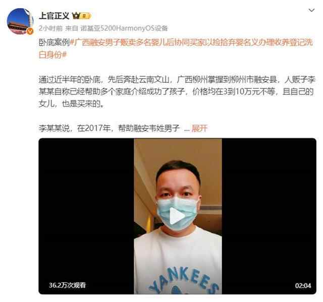 2月23日,打拐志愿者上官正义发布微博反映,广西柳州市融安县李某某贩卖多名婴儿。当日下午,融安县公安、民政等多部门回应记者称,已关注到相关信息,目前正在调查核实中。
