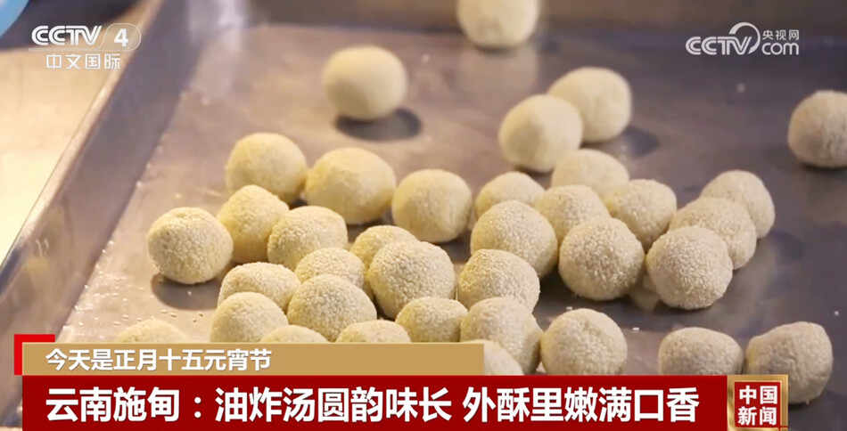 在云南保山市施甸县,当地吃汤圆不用水煮,而是酷爱油炸。制作油炸汤圆十分讲究,包好豆沙馅的生汤圆在炸制之前要先裹上一层白芝麻,待锅中油加热到翻滚时,再把裹好芝麻的汤圆放进油锅里炸制,起锅的汤圆油润金黄、表皮酥脆、口感香。