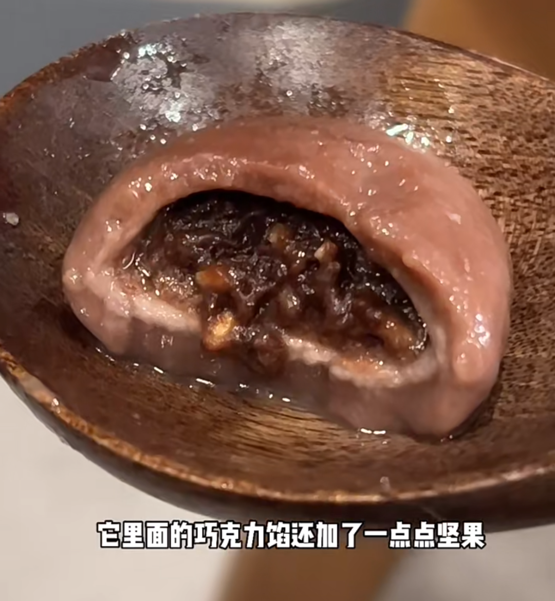 一口爆浆的巧克力汤圆可以说是相当俘获人心了,浓郁的可可味搭配丝滑的口感,真是让人难以“住口”。