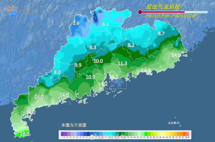 @广东天气预计,25到26日,广东省中北部维持阴冷天气,部分市县有小雨,粤北的高海拔山区局部有冻雨和冰冻,粤北的偏北市县有5℃及以下低温。