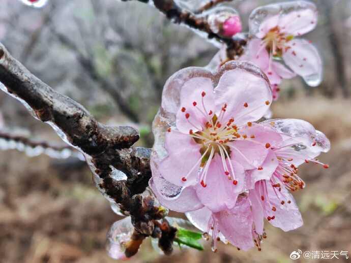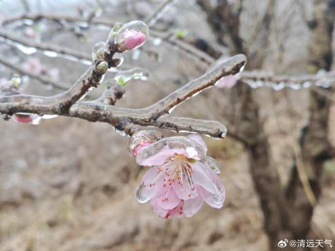 昨天,在广东清远,还能赏到独特的“冰花”,天气冷到连花儿都被“冻住”了。