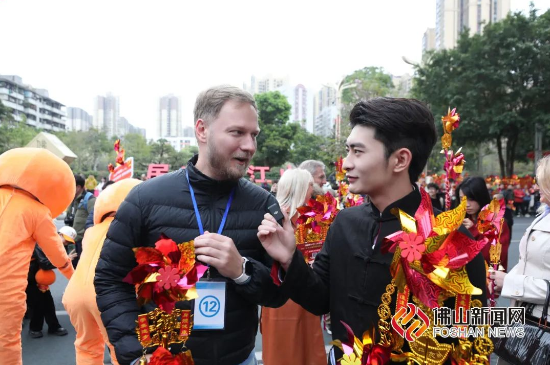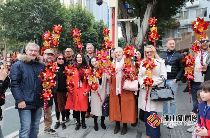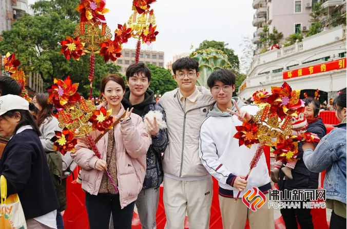 外国友人齐齐行通济,感受佛山特色元宵氛围。