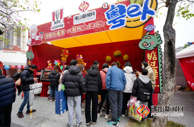 佛山新闻网携手广东肯德基共同打造了“陪你行通济一起快(K)发(F)财(C)”主题线下展位,不仅有咖啡、炸鸡等美食开售,还有城市IP文创杜邦纸袋等任人们挑选。