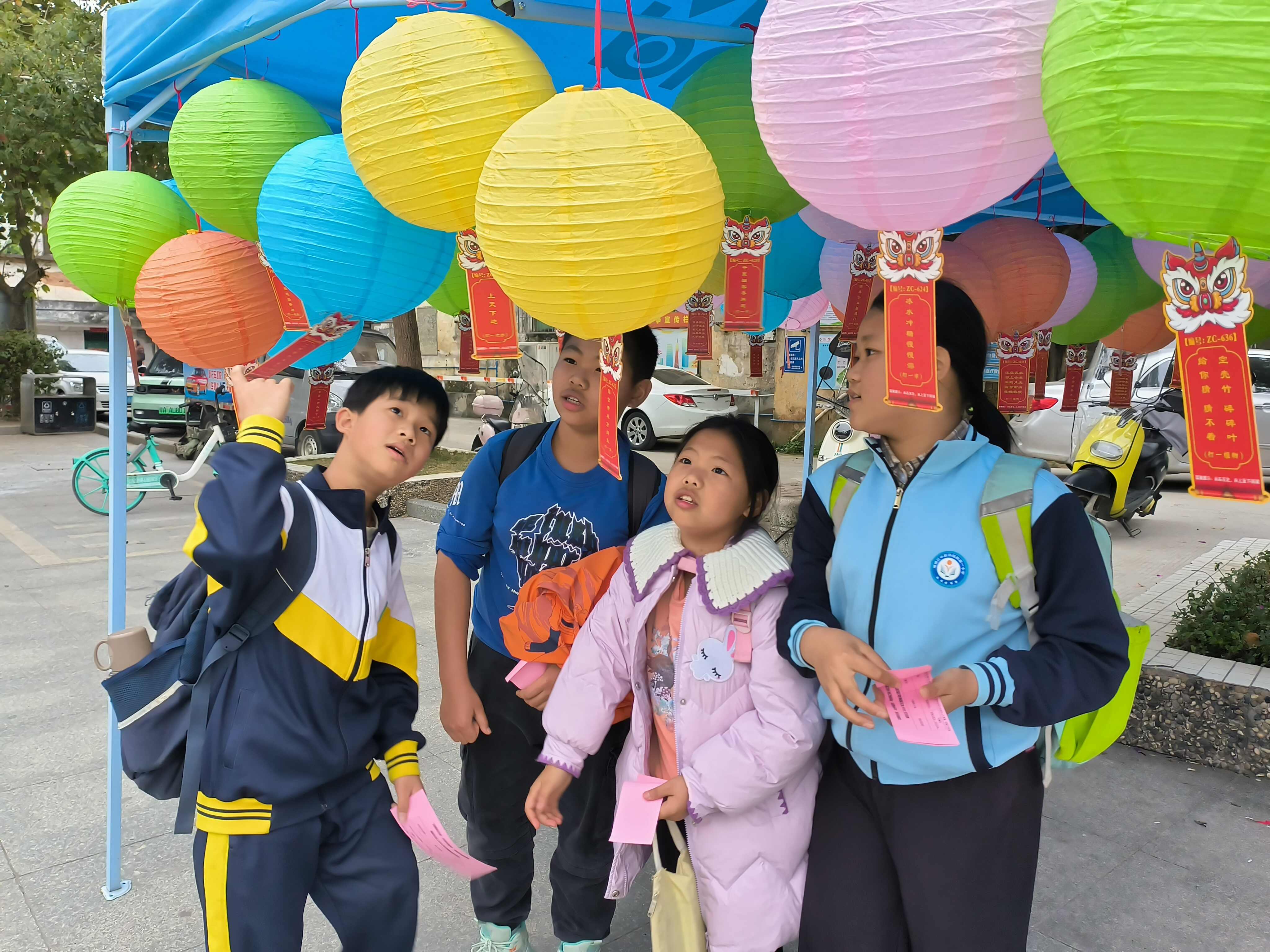 其中,在“知竹常乐”非遗竹编宣传摊位,大家可以看到竹编手艺人充满野趣又实用的作品,感受竹编的魅力;在红色经典文化宣传摊位,群众认真研读革命先烈的红色故事,上一场爱国教育的微课堂;在猜灯谜区,人影转动,居民们一会儿沉思,一会儿惊叹,各种谜面甚是有趣……