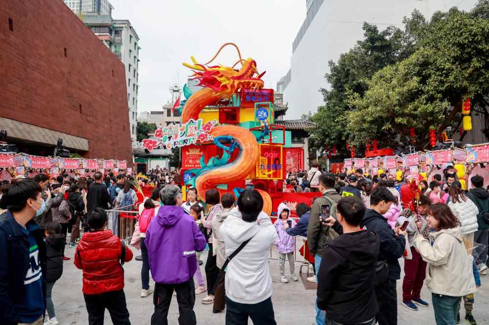 据介绍,本次庙会采用创新的形式重新诠释传统文化,让非遗走出小众,面向更广阔的大众市场。羊城晚报全媒体记者现场看到,庙会邀请了八次登上央视春晚的国家级非遗代表性项目杭州铜雕技艺与市民进行互动。省级代表性传承人朱军岷、其父朱炳仁带来“熔铜现实主义”新流派。