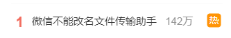 不久后,“微信不能改名文件传输助手”冲上微博热搜。