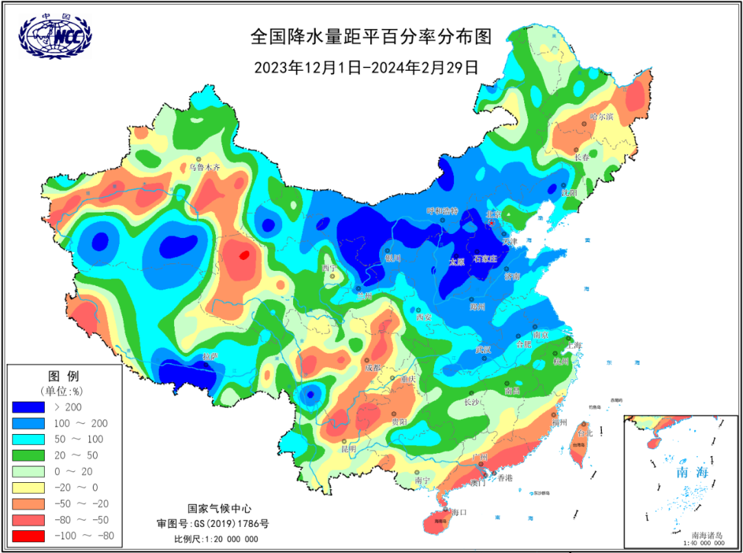 而在省会级大城市中,南昌今冬累计降水量最多,达343.7毫米,约为常年冬季平均降水量的1.5倍。而太原、石家庄、拉萨、郑州、天津、银川、呼和浩特、武汉、北京、济南今冬累计降水量更是远超常年,为常年的2至3倍左右。