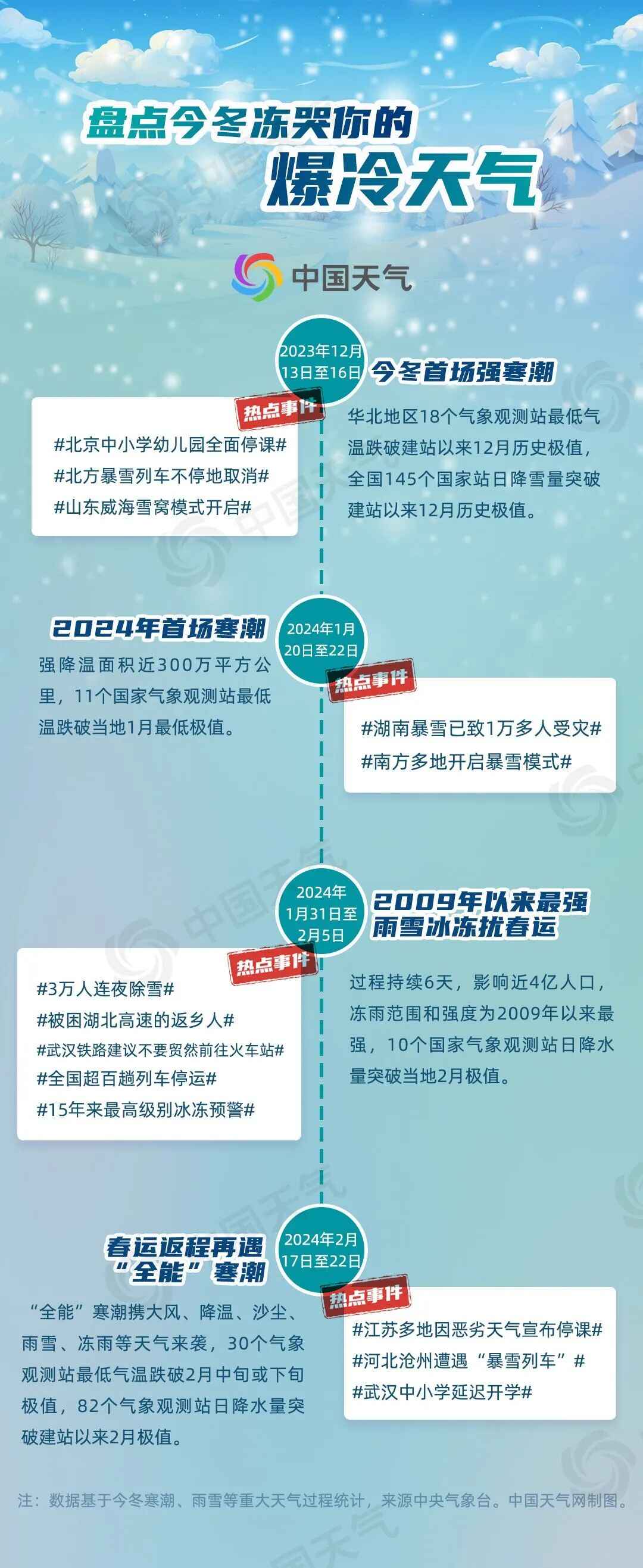 回顾刚刚结束的这个冬季,我国经历的寒潮次数偏多,实力强劲,同时,春运期间的大范围雨雪冰冻天气也让人印象深刻。