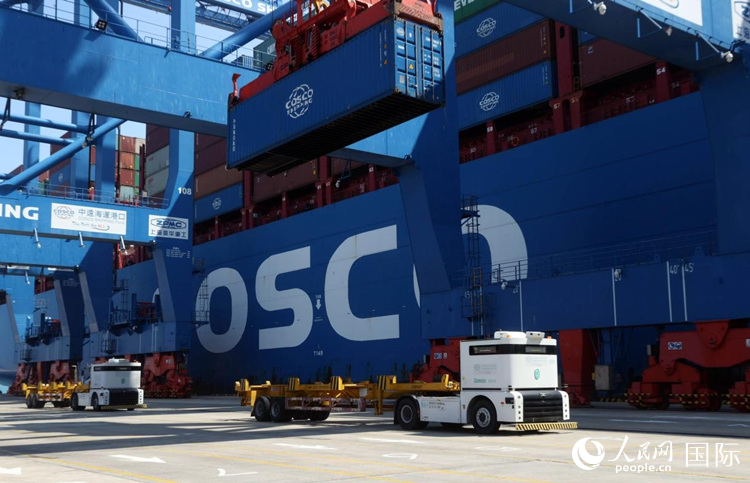无人集卡正在作业。人民网 纳达尔·达乌德摄