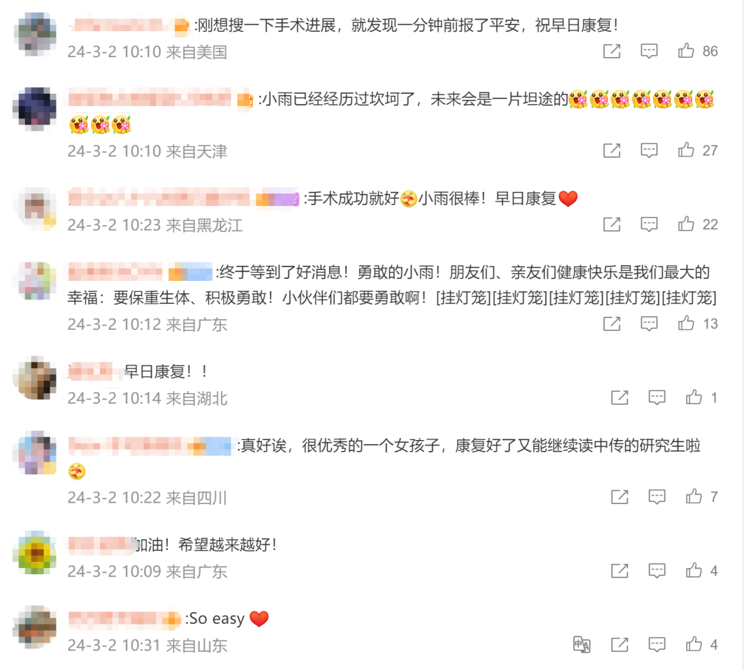 在高君雨社交账号的评论区,网友们纷纷留言为她送上祝福。