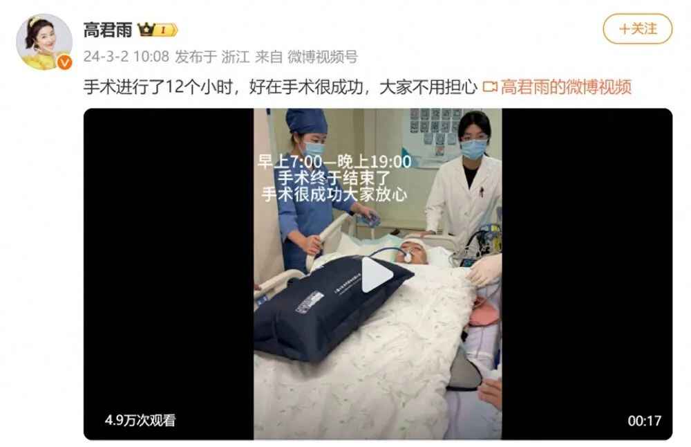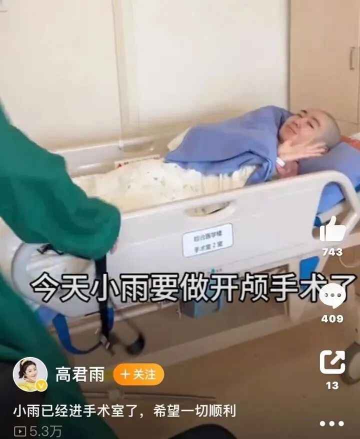 3月1日上午,高君雨个人社交账号更新了一则视频,称其目前已进入手术室准备手术。