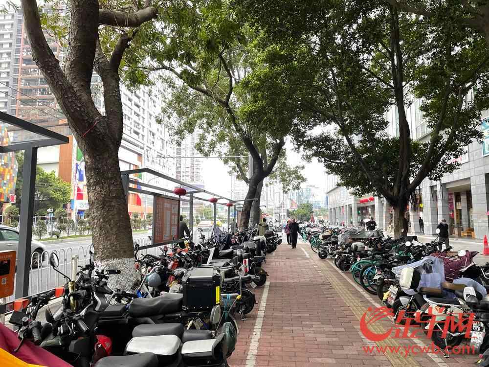 位于荔湾区的广钢新城是汇集多个新建高层住宅小区的大型生活片区,记者在1日下午走访看到,多个小区外部设有电动自行车停车棚和充电站,大部分停车棚停满了电动自行车。此外,多个小区门外道路划有清晰的非机动车停放区,车辆乱停乱放现象较少。