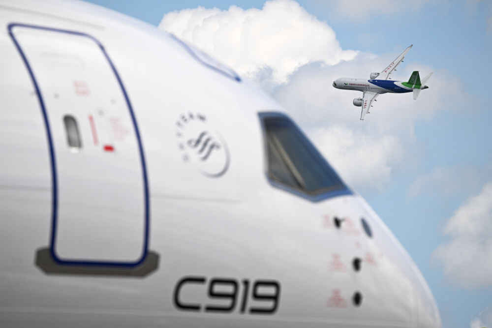 2024年2月20日,一架中国商飞公司C919客机在新加坡航展上做飞行表演。新华社发 (邓智炜摄)