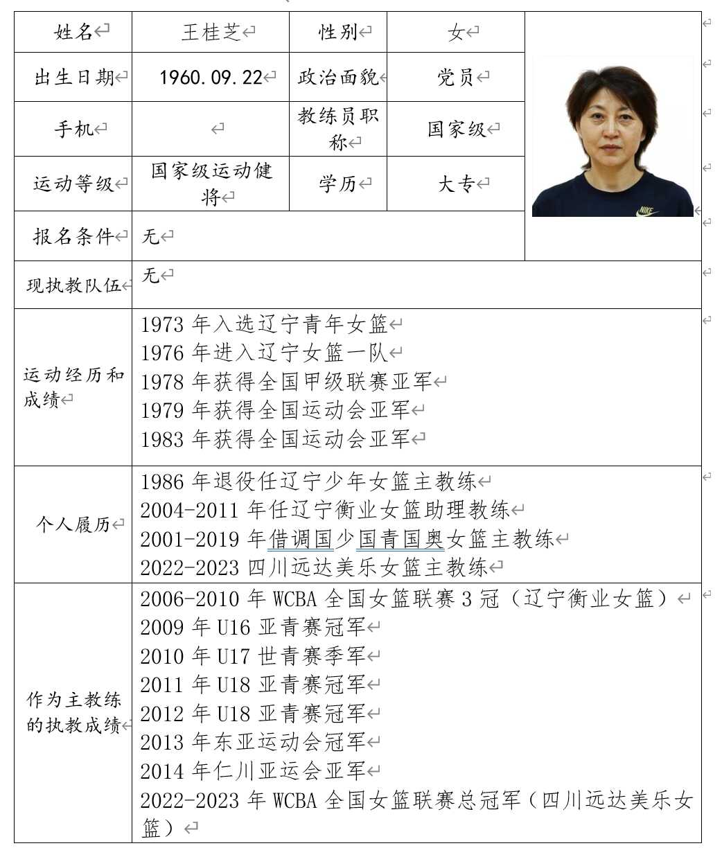 为备战2024年6月于深圳举办的2024亚洲U18女篮锦标赛和2025年的U19女篮世界杯,根据《中国篮球协会国家队教练员选拔办法》和《2024年国家U18女篮主教练选拔方案》的要求,中国篮球协会通过社会公开选聘流程,遴选出王桂芝(女、辽宁),担任国家U18女篮主教练。聘期至2025年7月,试用期为4个月。