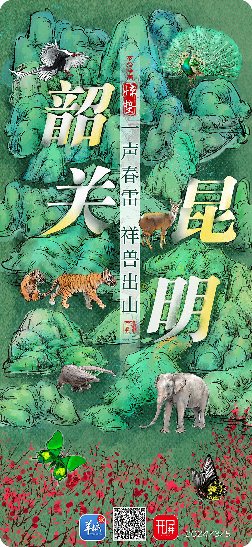 仲春伊始,羊城派《节绘岭南》“拍了拍”春城晚报,在神奇的北纬25°山林间,共同守候韶关、昆明的可爱生灵。看,祥兽出没!