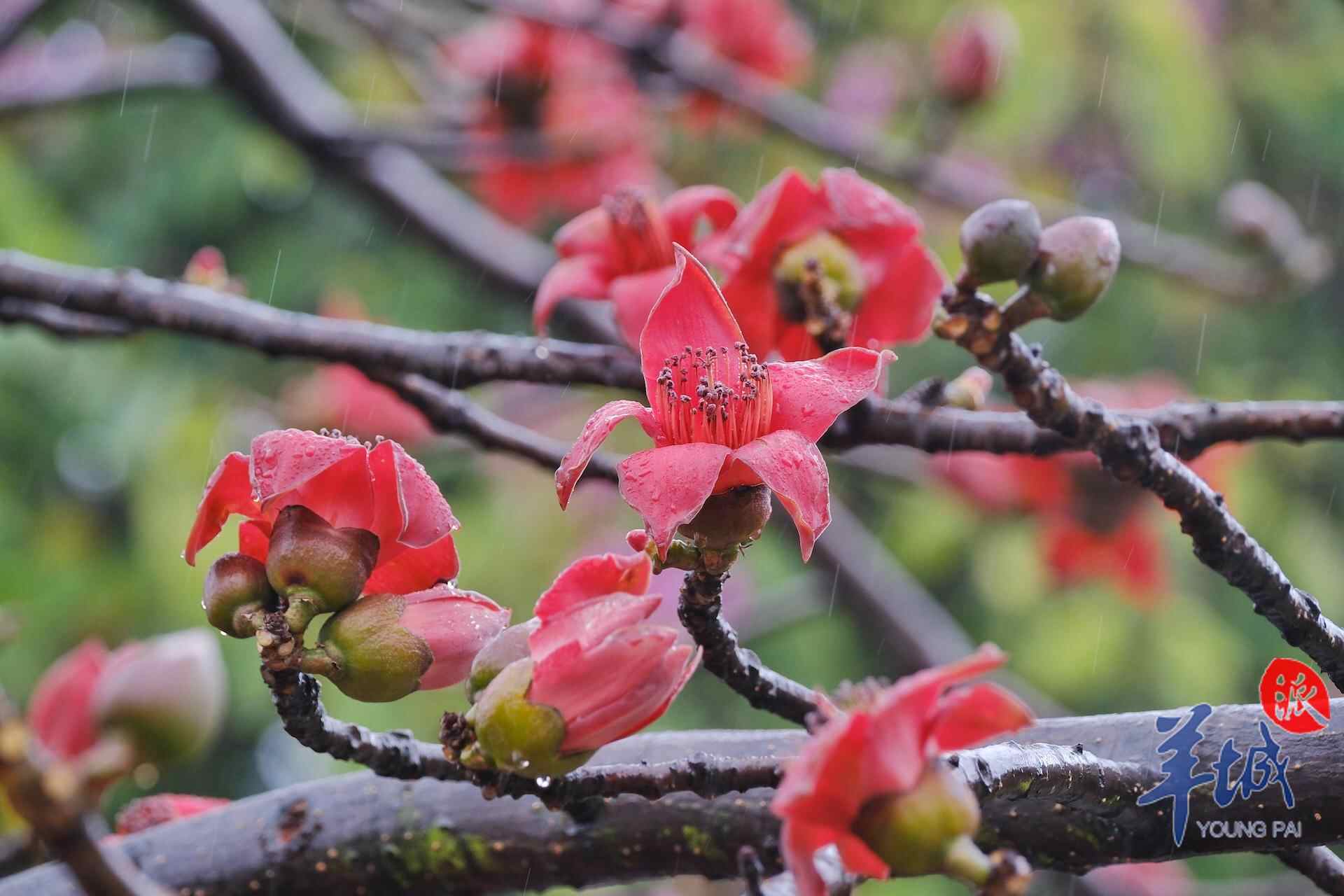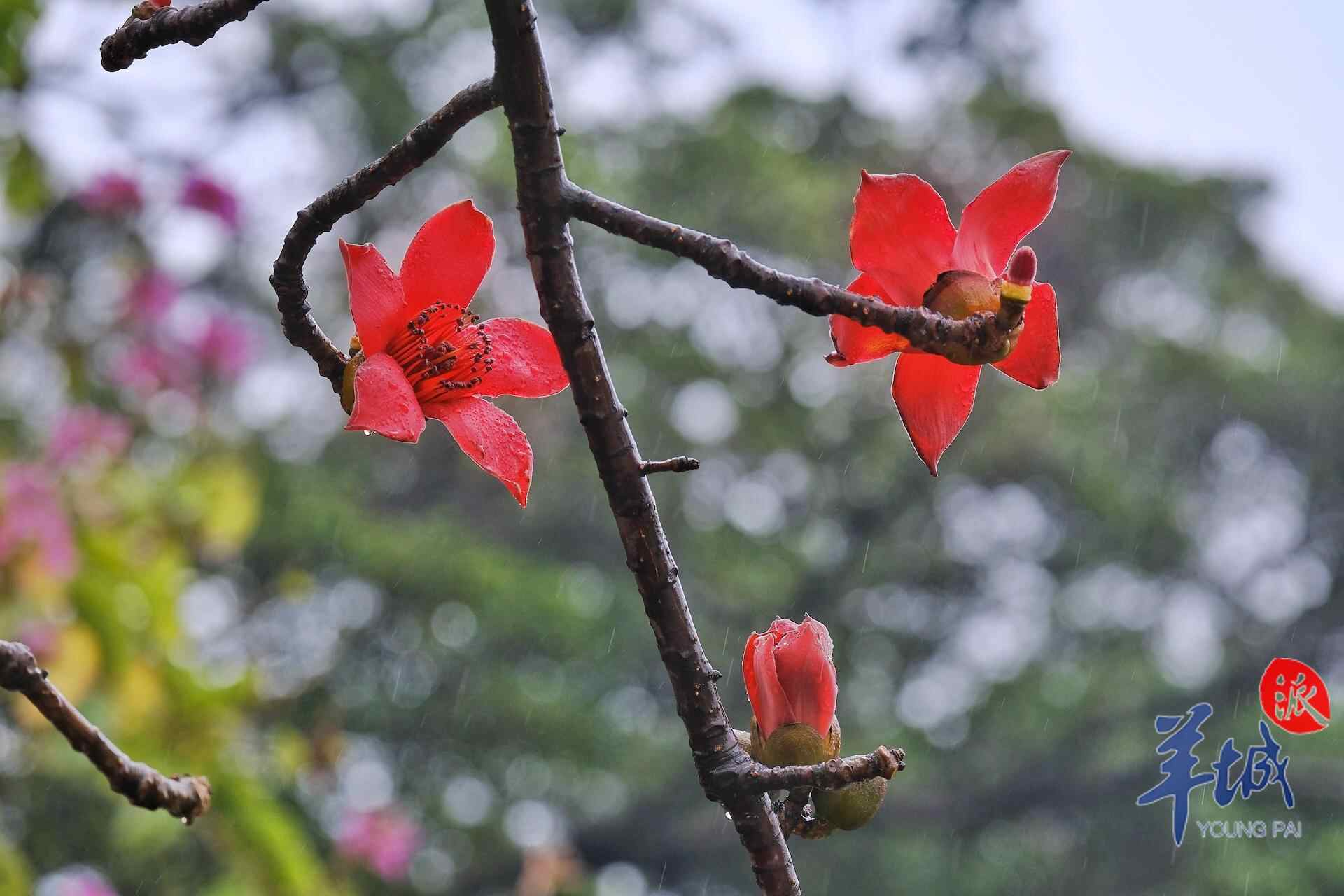 最近,广州城里的红棉在雨雾中灿烂盛开,如诗如画。