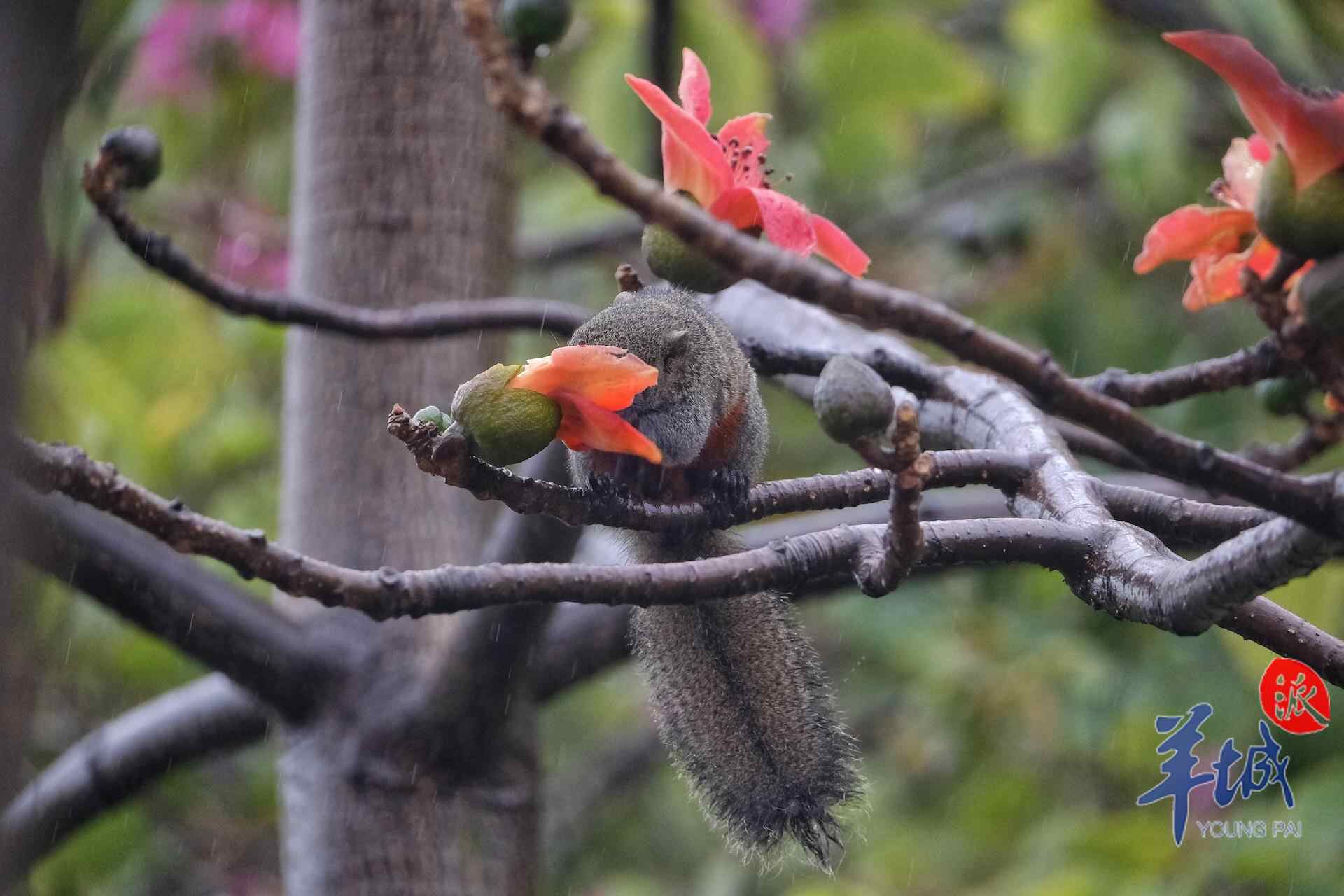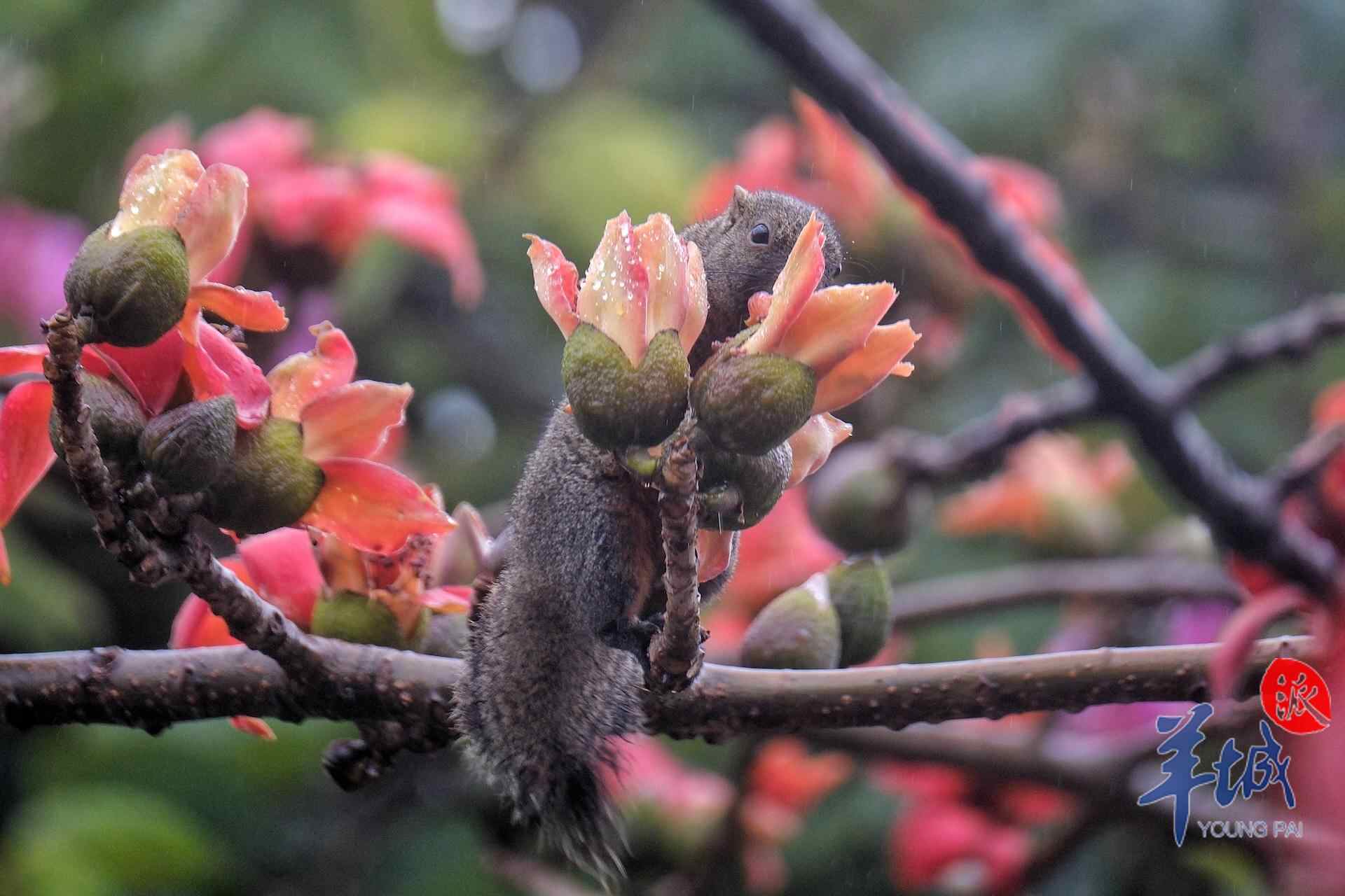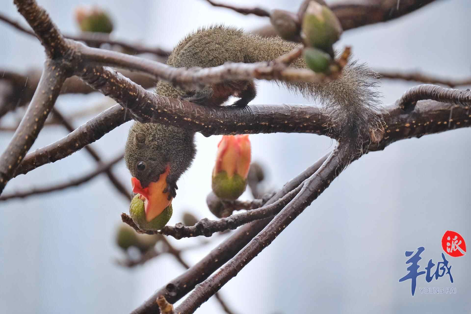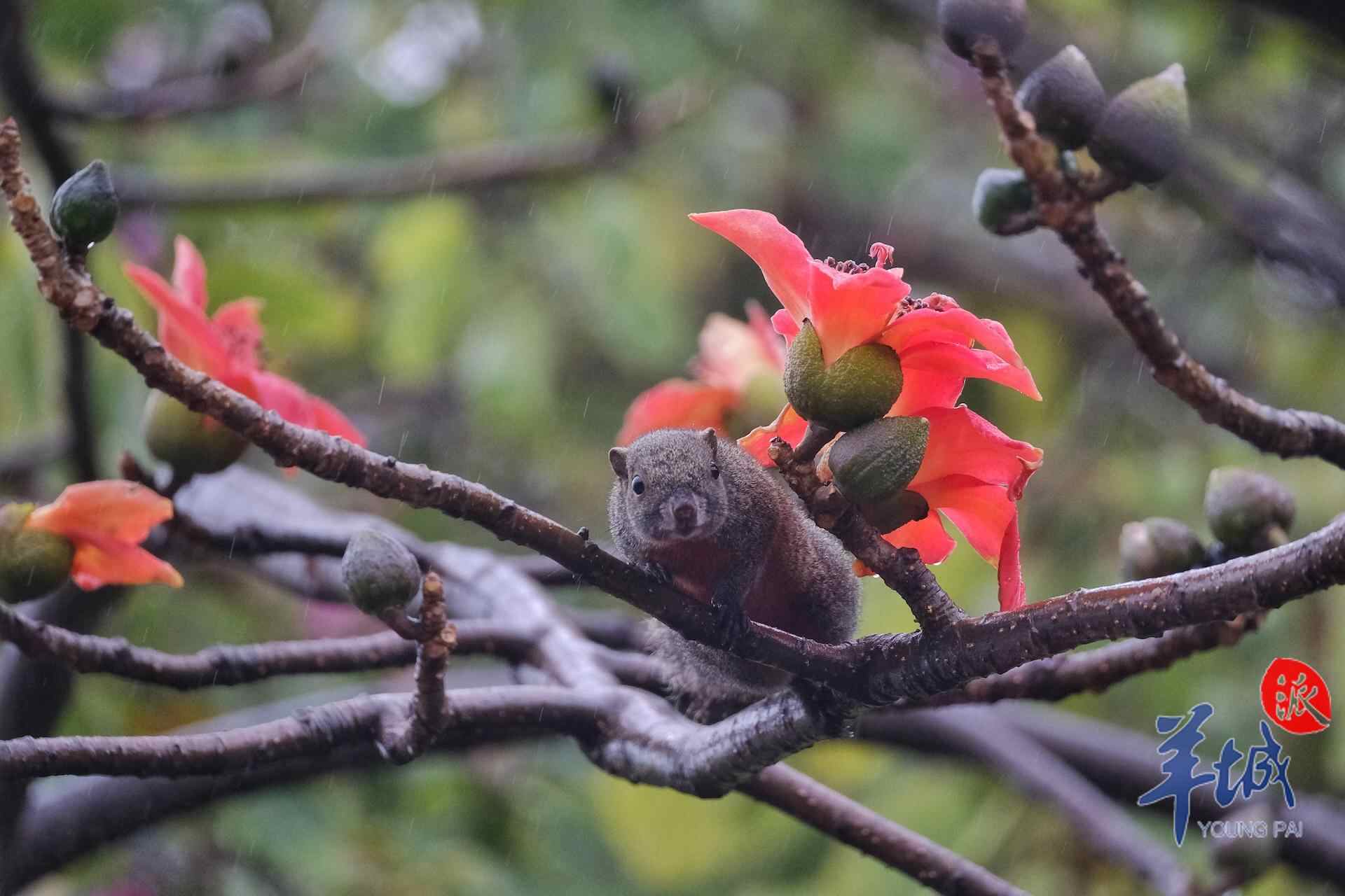 带大家看看艳丽的红棉,还有在枝头歌唱的小鸟,以及享用花蜜的小松鼠~~(以下图片均为羊城晚报记者陈秋明 所摄)
