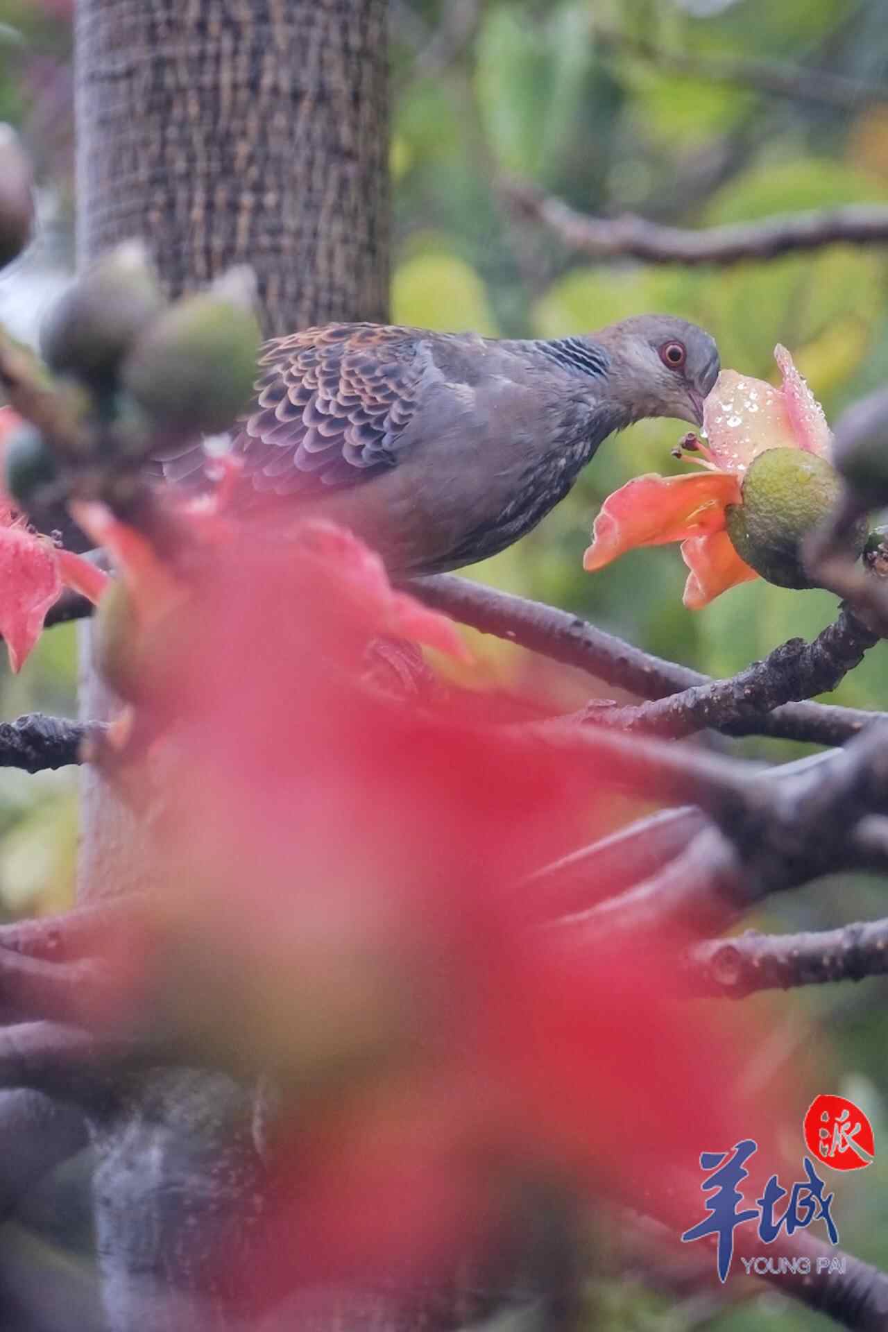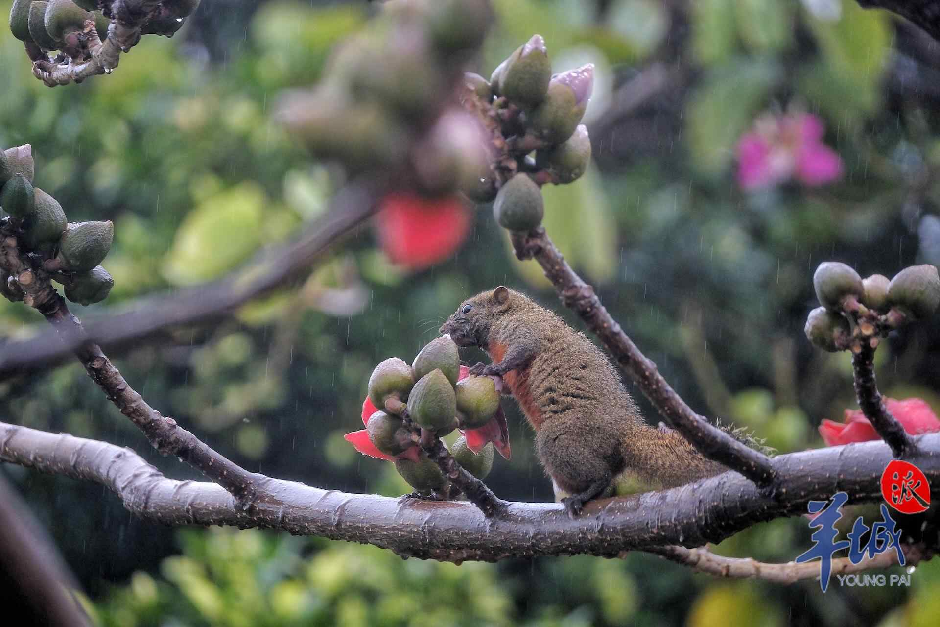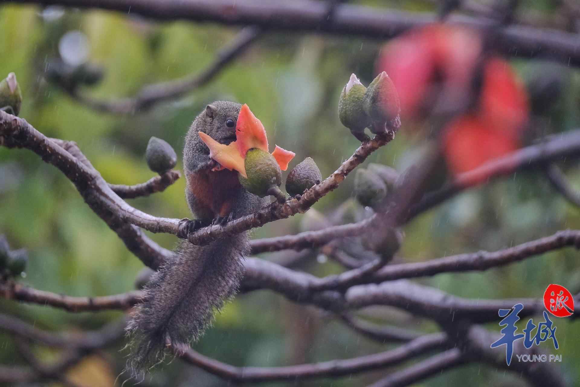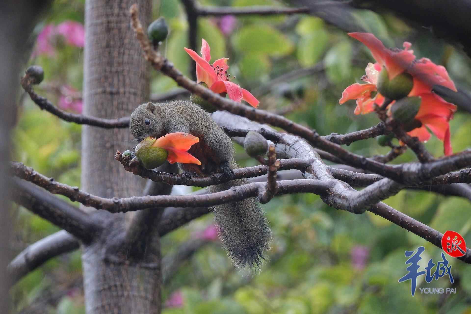 带大家看看艳丽的红棉,还有在枝头歌唱的小鸟,以及享用花蜜的小松鼠~~(以下图片均为羊城晚报记者陈秋明 所摄)