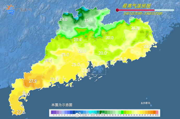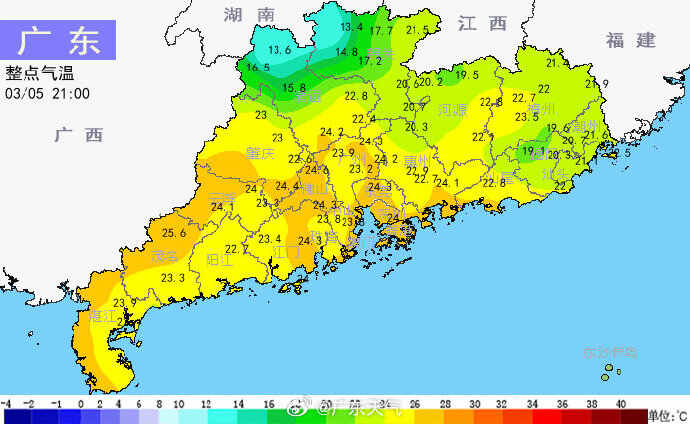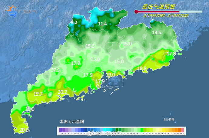 根据@广东天气 预计,3月6日到7日,因中等强度冷空气南下影响广东,大部分市县气温下降4℃~6℃;3月8日,西部市县有零星小雨。