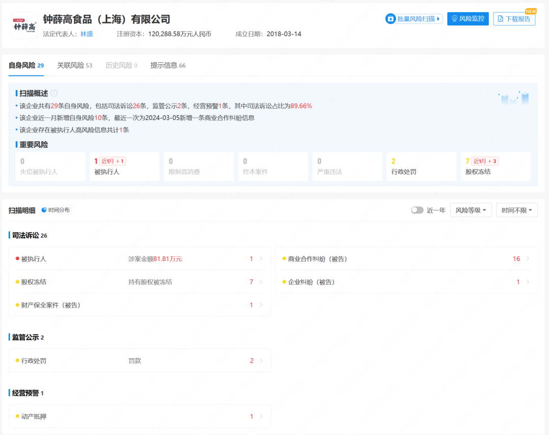 近日,据中国执行信息公开网消息,钟薛高新增一则被执行人信息,执行标的818106元,执行法院为上海市嘉定区人民法院。