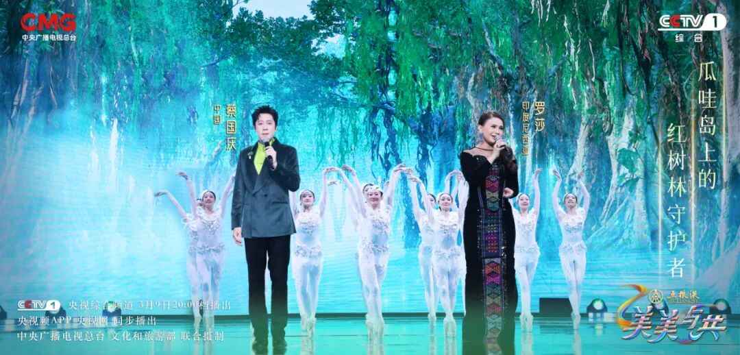 爪哇岛上国能印尼爪哇电厂附近的一片红树林,正被两国建设者集体用心守护着。红树林保存着多种生物和微生物,是地球重要的生态系统,当海啸来临时,更是当地沿海居民的“生命防线”。中国与印尼在联手建设国能印尼爪哇电厂的过程中发现了一片红树林,当即下定决心守护好它,组建了红树林及野生动植物生态保护工作小组,并成立了红树林生态保护中心。该公司内控管理部副经理杨欢、公共关系部副经理安琪都是小组成员,她们在节目中与大家分享了红树林中自由成长的动植物,电厂工作人员会为蜥蜴停车,百鸟归巢的宏大场面每天都伴随日落上演。节目现场,听蔡国庆和印尼歌手罗莎演唱《船歌》,感受这片红树林的独特记忆。中国与印尼的绿色相守,不仅是切实地帮助当地经济发展,也是建设人与自然和谐共生的生态文明。