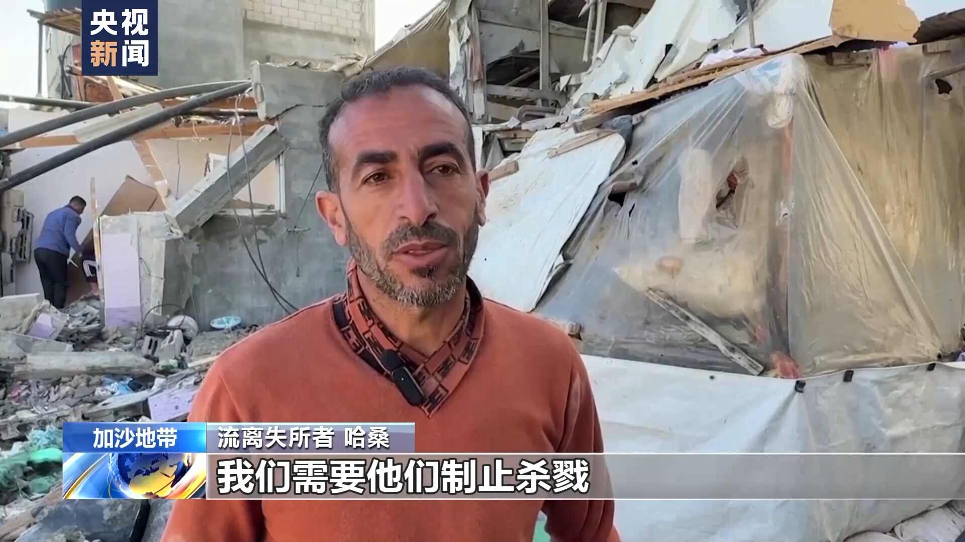 流离失所者 哈桑:与其告诉我们说,他们会建一个港口来帮助我们,不如停止向以色列提供武器。所有那些来自美国的武器,随时随地都在杀死我们和我们的孩子。我们不需要他们的物资援助,我们需要他们制止杀戮,停止杀戮带来的死亡。现在不论我们逃到哪里,死亡都如影随形。