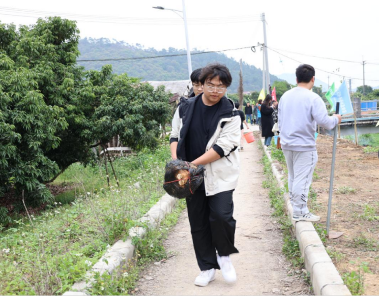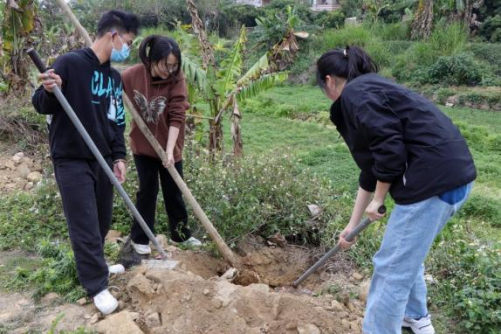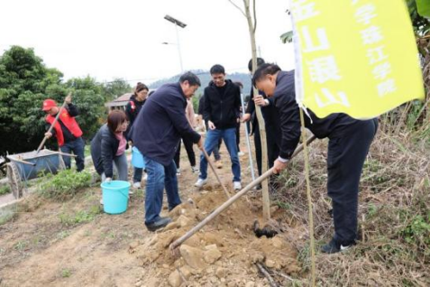 南国春来早,万物竞芳菲。在春暖花开的阳春三月,迎来我国第46个植树节。为响应国家开展义务植树、绿化祖国的号召,深入推进实施“百千万工程”推动“绿美广东”生态发展,践行“绿水青山就是金山银山”的发展理念,3月7日,华南农业大学珠江学院与江埔街驻锦三村工作组联合举行“开展公益种树 建设绿美广东”活动。