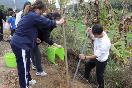 在全体人员的共同努力下,本次活动共种植宫粉紫荆110棵,桃树40棵。一排排整齐的小树苗在春风中傲首挺立,为大地种下一抹新绿。