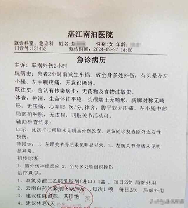 “2月27日,我骑电动车下班途中,遇到了一个闯红灯的小朋友,便遭遇了车祸,要不是当时穿得厚,肯定骨折。”赵女士告诉记者,当时是路人把自己抬过去的,后来去医院检查,结果显示全身多处外伤,头部、左小腿以及左手腕均受伤。