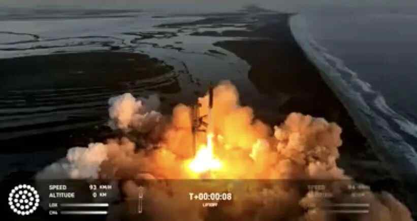 2023年4月,星舰从得克萨斯州起飞,执行首次轨道级测试飞行任务,但升空后不久就遇到了问题,33台猛禽发动机中,两个发动机在飞行过程中失灵,第三个发动机忽明忽暗。SpaceX下达了自毁指令,随后星舰在墨西哥湾上空摧毁。