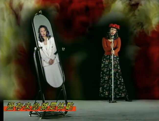 除了雷电,在MV中还有其他在当时看来属于先进的特效技术,比如镜中那英与现实中的那英互动,便是呼应“真假”的主题。