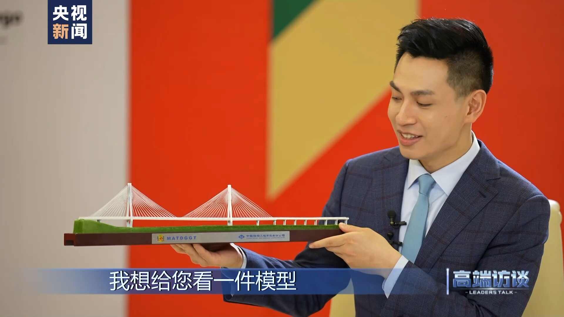 主持人:总统先生,我想给您看一件模型,我想您对它非常熟悉,这是布拉柴维尔斜拉桥,也是当地的地标性建筑。这也是由中国企业承建的。今年是习近平主席提出共建“一带一路”倡议第11年,刚果(布)作为重要的合作伙伴和积极的参与方,您认为共建“一带一路”会为中刚之间的合作带来哪些新契机?