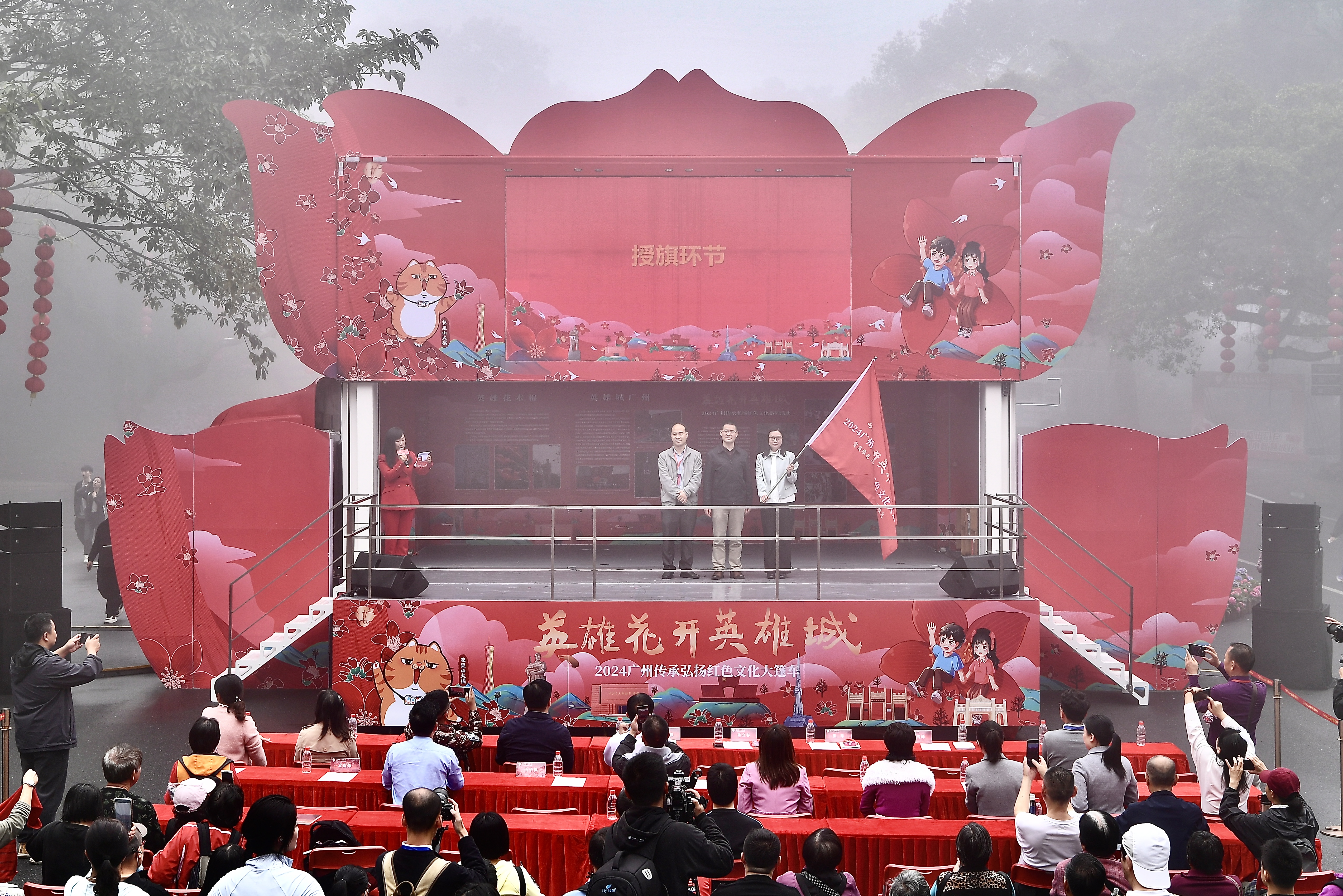 活动伊始,“英雄花开英雄城”2024广州传承弘扬红色文化大篷车旗帜传递交接至白云区。随后,歌曲《奔赴未来》、粤剧对唱《故乡新气象》等一系列精心准备的节目有序上演,为观众带来了一场视听盛宴。在宣讲环节,讲解员余碧仪、陈胡月动情讲述革命先烈故事,让观众在活动中感悟革命先烈的精神力量。