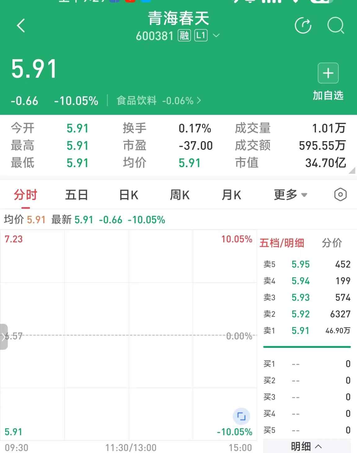 3月18日,青海春天的股价开盘即跌停,截至记者发稿,其当前股价为5.91元/股,单日跌幅为10.05%,公司总市值约为34.7亿元。Choice金融终端显示,截至2023年9月底,青海春天的股东户数为56314户。